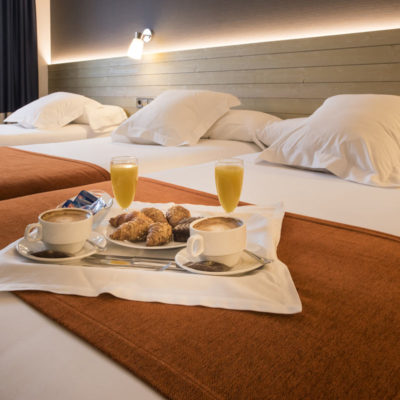 La habitación triple está formada por dos camas de 1.05 de ancho y 1.90 de alto y por una cama de 0.90 de ancho y 1.80 de alto.